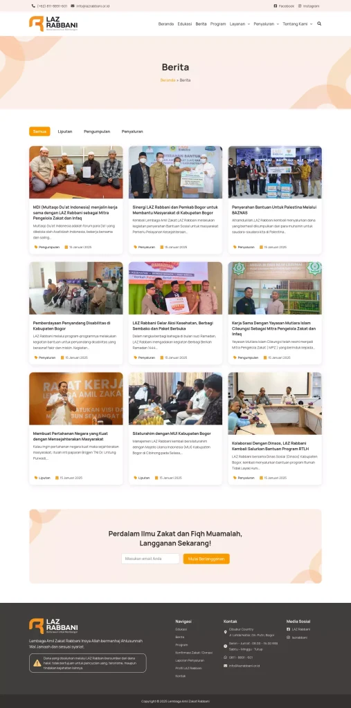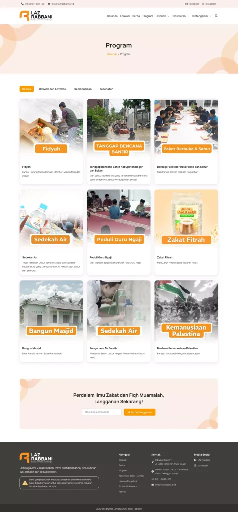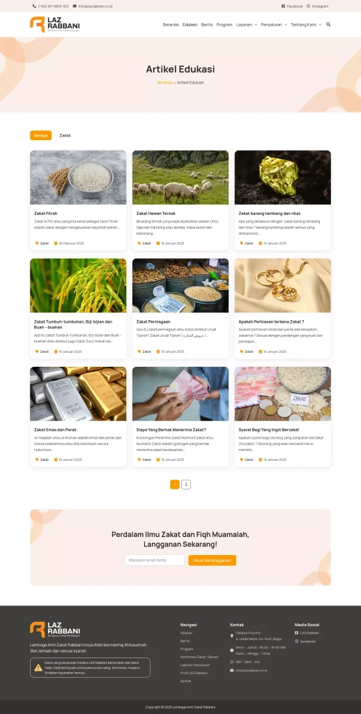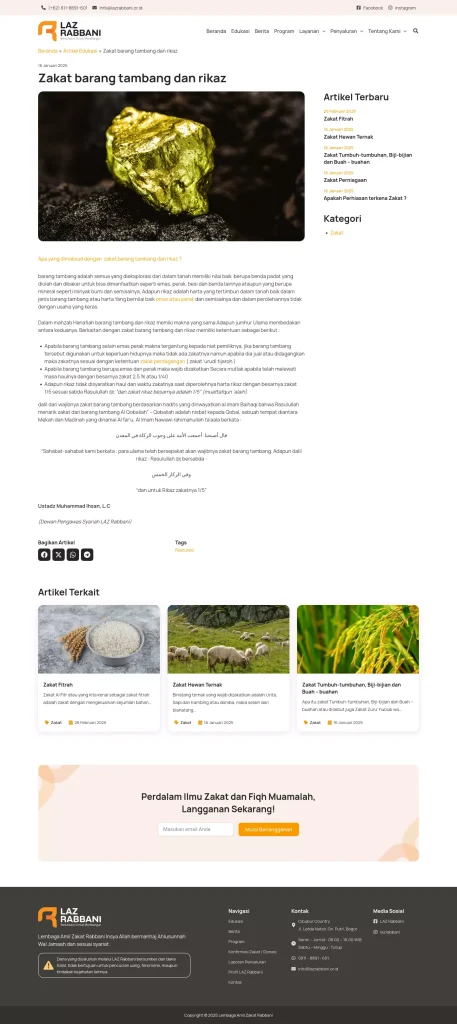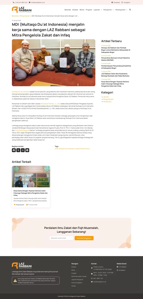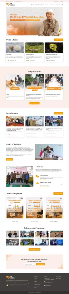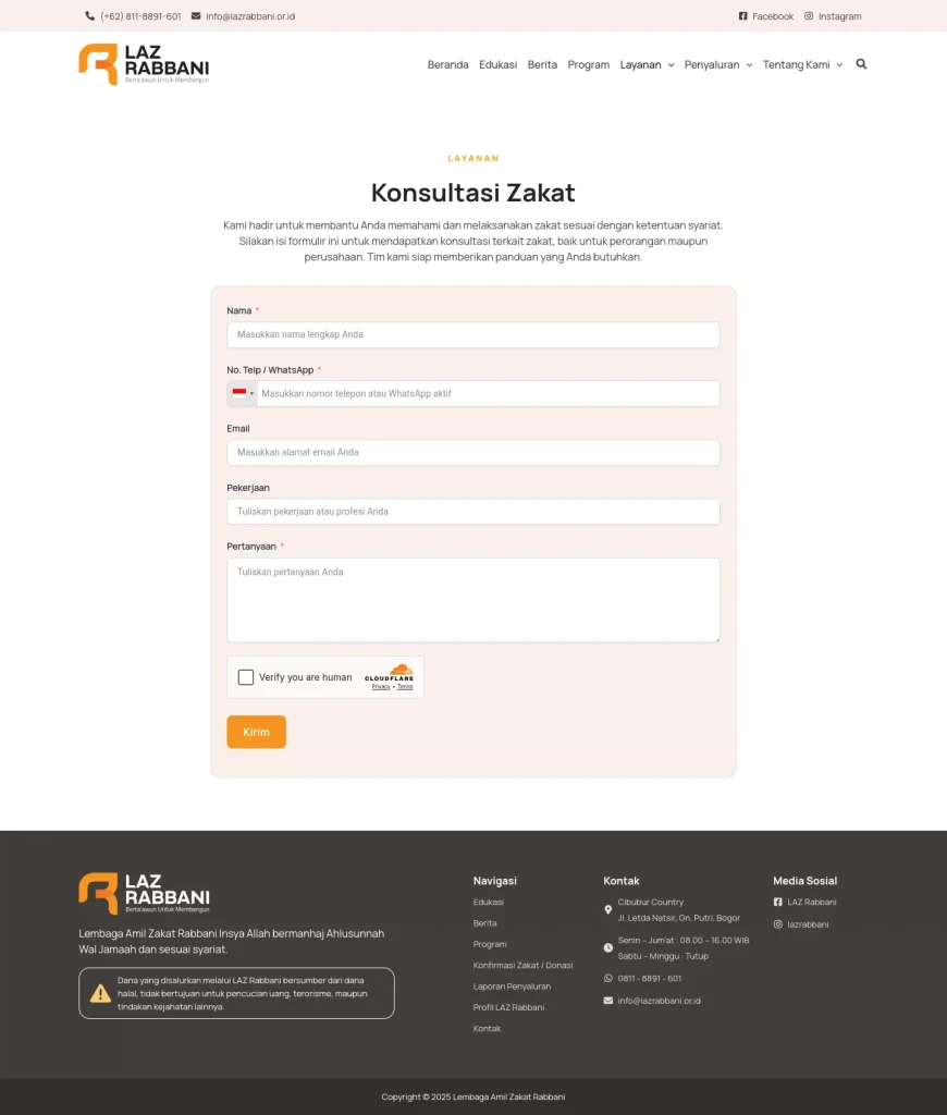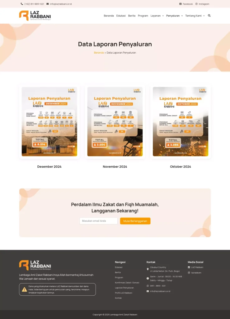 LAZ Rabbani is a zakat institution focused on education and distribution services. The website was developed as a central platform to provide accessible information about zakat, while supporting community engagement through services and programs.